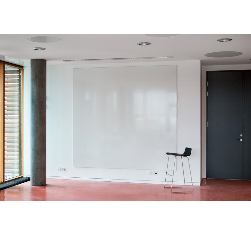 The Diamond Wall allows intensive writing, large-format displays, and projection across its entire surface. The Diamond Wall consists of multiple panels that are assembled during installation. For example, a 200x400 cm board is delivered in 4 panels, each measuring 200x100 cm.