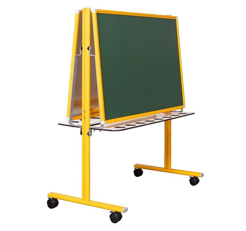 Ideal for nurseries and multi-level kindergarten classes: the board can be mounted at two different heights. The wall easel lets children draw with dry erase markers, chalk on the e3 enamel surface, or paint on a paper pad. Its magnetic surface allows for displaying posters and memos with magnets