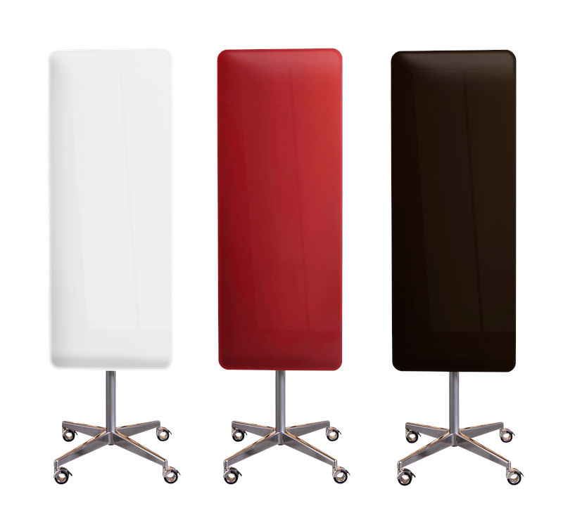 The mobile SALSA glass easel brings a touch of elegance and colour to any environment. Frameless, its surface allows you to improvise a brainstorming session at any time or to display with strong magnets. Durable, the glass is easy to clean and resists disinfectants in daily use.