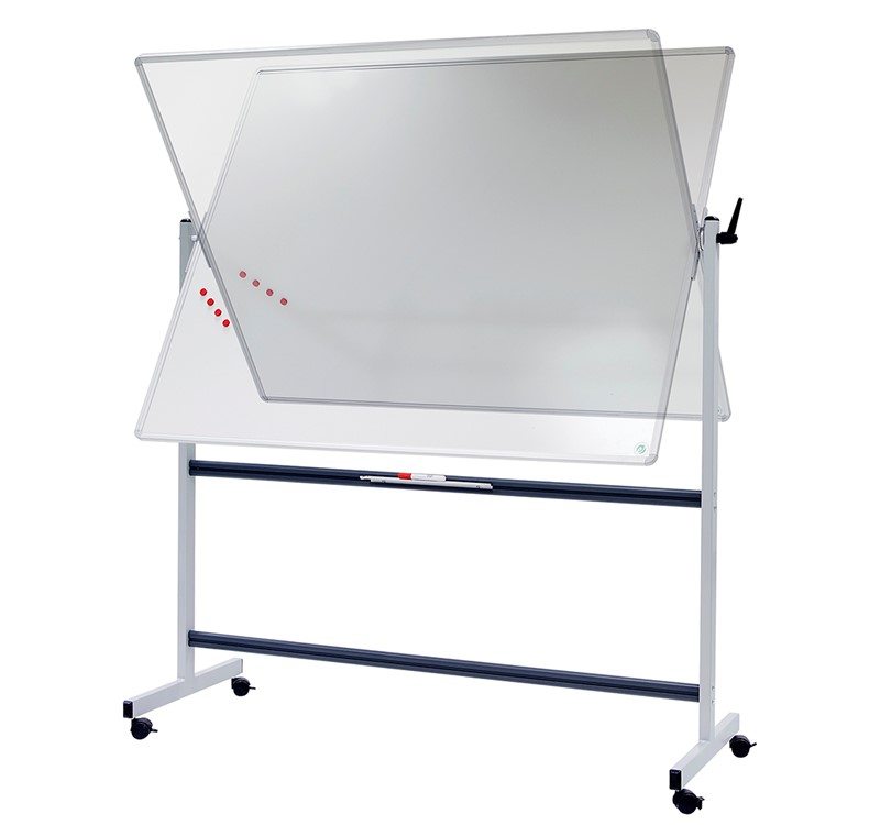 Easy to move within a room or from one place to another, the horizontal swivel board provides a double surface everywhere. The board rotates on a 360 ° horizontal axis and is available in a different enamel surfaces designed for writing with markers or chalk as well as for projection.