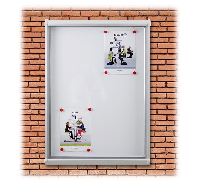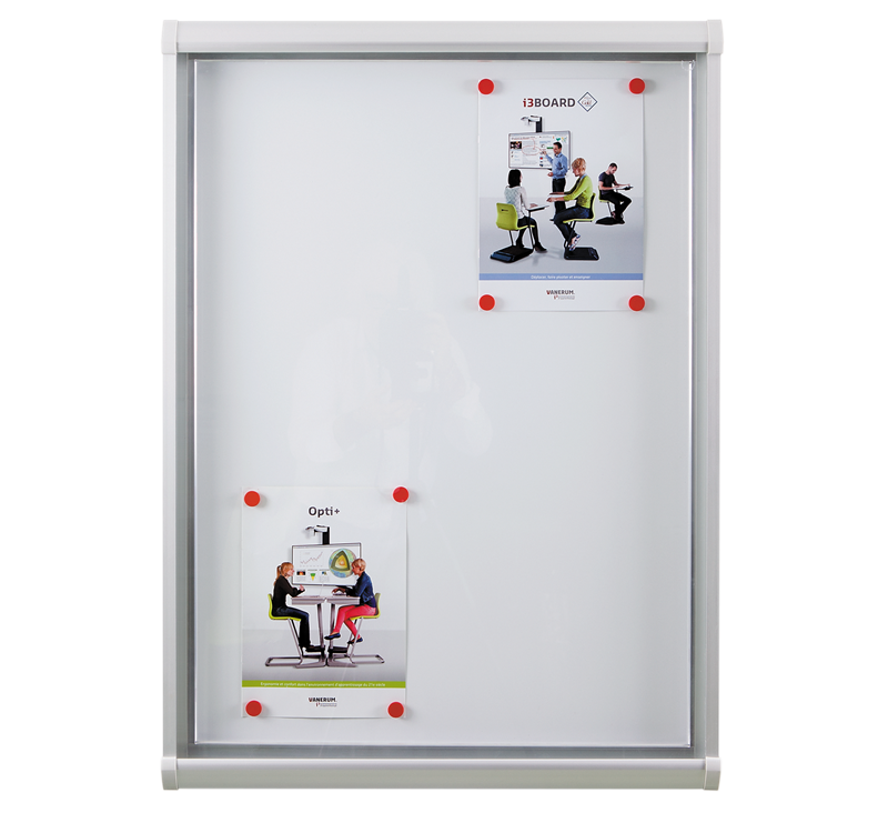 EASY ACCESS: The hinged door makes it easy to access content for updating. The door can be installed on the right or left. Magnetic surface for displaying with magnets.