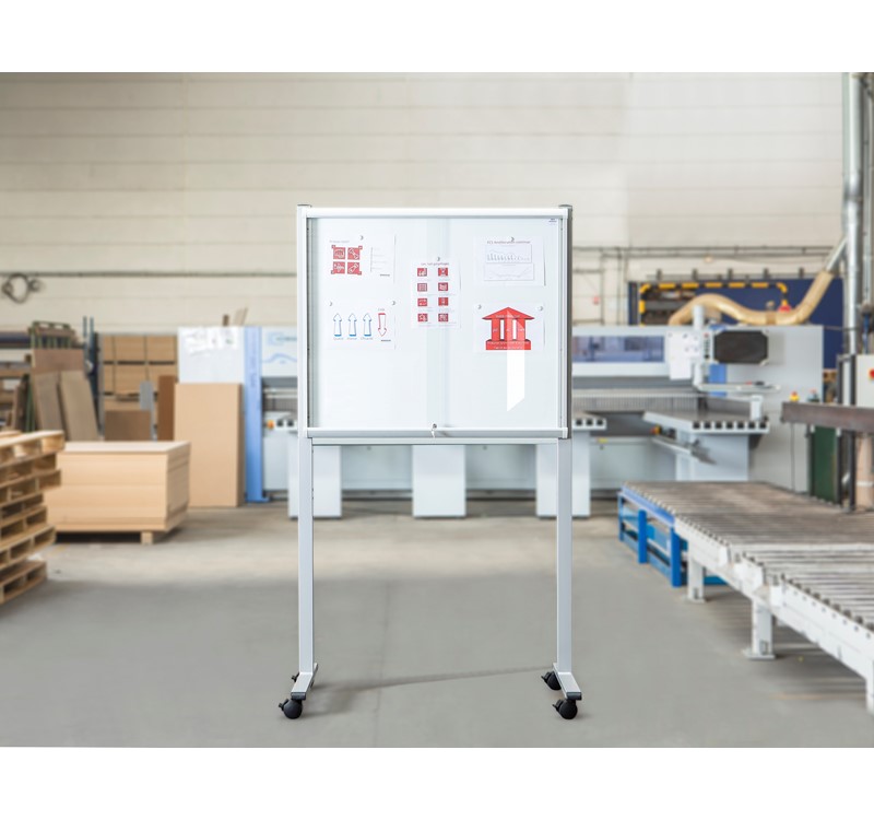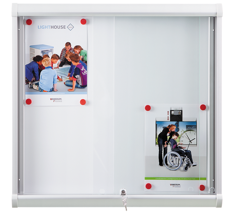 With a display capacity of 6 to 27 A4 sheets, LEADER sliding doors display cases offer the choice of a steel surface allowing the display by magnets or a corkboard to communicate your messages using push pins.