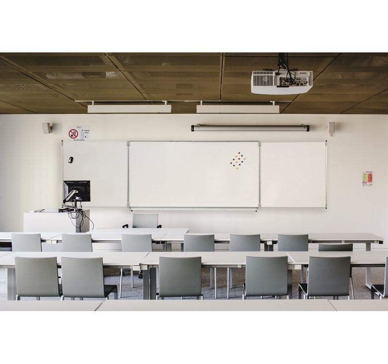 Reliable and functional, the CLASSIC triple board offers 5 surfaces to choose identical or mixed, plain or sreen printed with lineages or grids according to your needs (writing with marker or chalk, projection, brightness of the room). Safe and environmentally friendly, it has been certified to NF Education and NF Environmental standards.