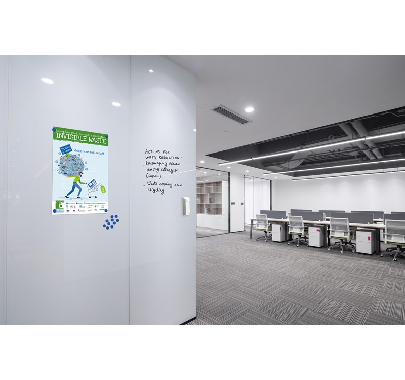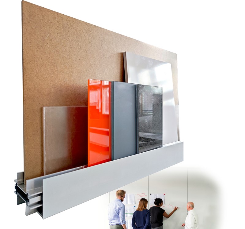 Integrate any height enamel or glass panels directly into the partitions with a cover or edge-to-edge for maximum magnetic writing and display surfaces.