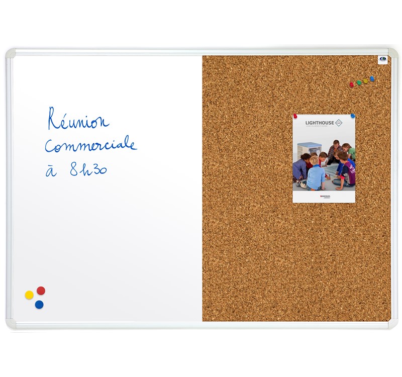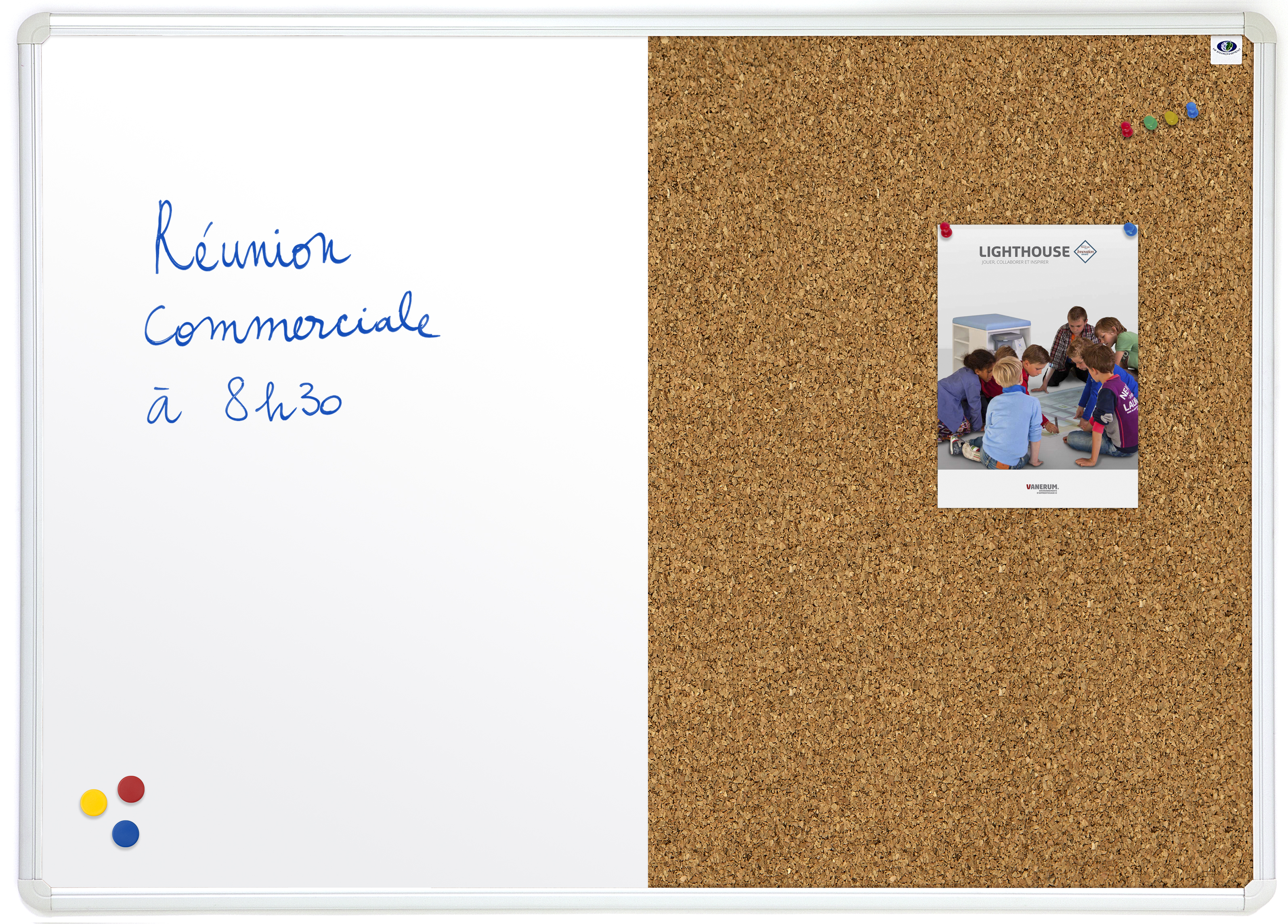 Fitted with a sober and elegant anodised aluminium frame, the SB (SHELLBOARD) range of boards in e3 enamelled steel are available in a range of dimensions from 45x60cm to 120x300cm or 150x240cm and are very easy to install with only 4 attachment points. They are certified to NF Education, NF Collectivité and NF Environnement.