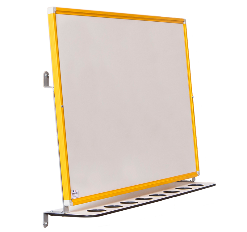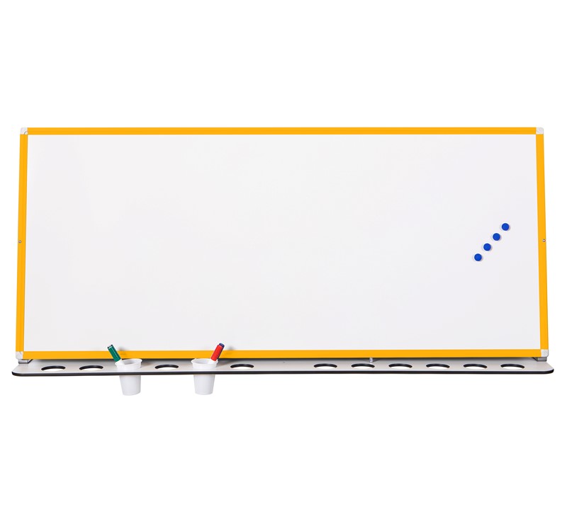 The wall easel allows children to draw like real artists either with dry erase markers or chalk on the inclined e3 enamel surface or with paint on a paper pad. Its magnetic surface allows you to display posters and memos with magnets.